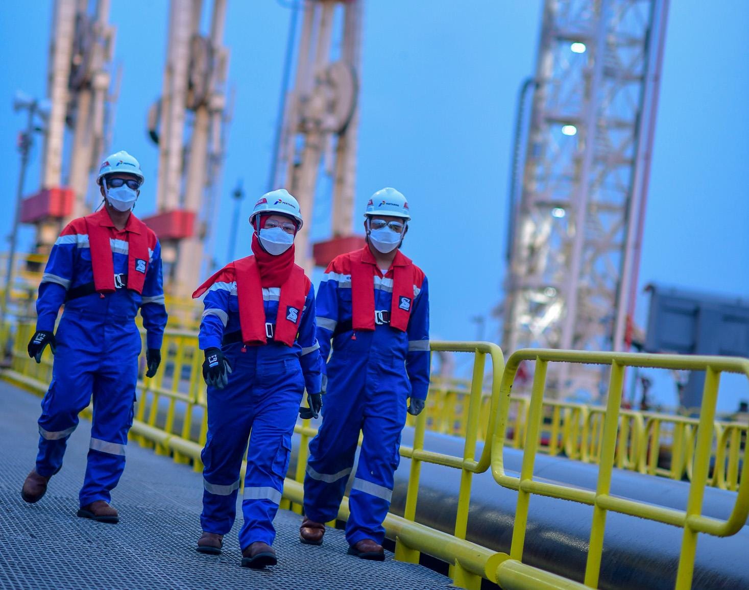 Para pekerja PT Pertamina Hulu Rokan (PHR) sedang melaksanakan aktivitasnya dalam mendukung ketahanan energi nasional dari WK Rokan.